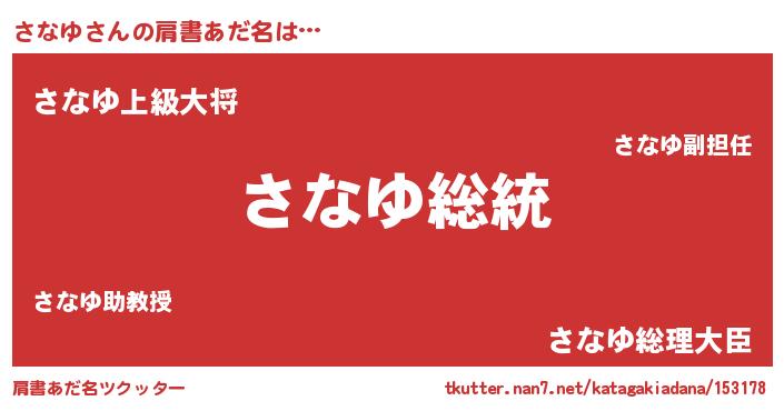 | 男性向けラノベタイトル風あだ名 | 『Re:さなゆから始める異世界生活』 |