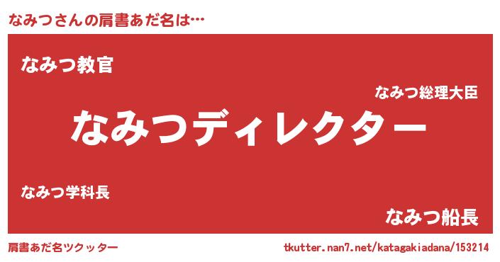 | 意味不明あだ名 | 『住所不定無職なみつ(43歳)』 |