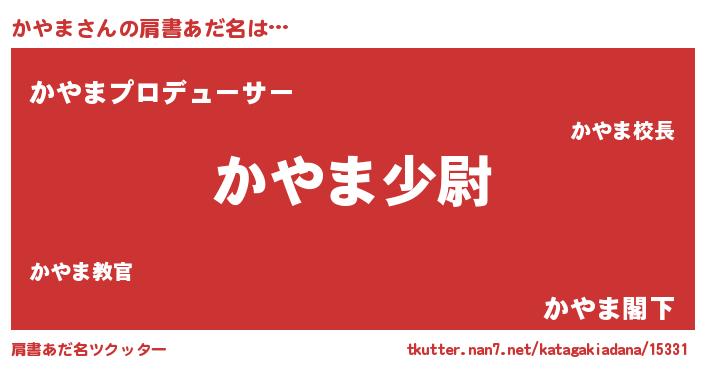| 男性向けラノベタイトル風あだ名 | 『カヤマスレイヤー』 |