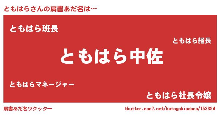 | ヘコむあだ名 | 『ともを』『ともふぇ~』『レバニラ』 |