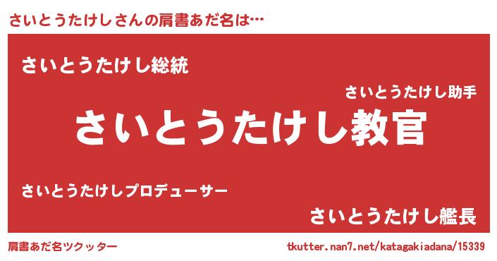 | 男性向けラノベタイトル風あだ名 | 『この素晴らしい世界にさいとうたけしを!』 |