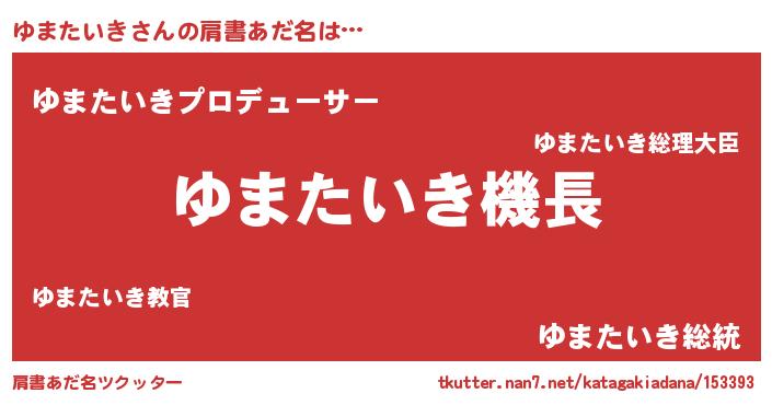 | 男性向けラノベタイトル風あだ名 | 『うちのゆまたいきが世界を掌握している!』 |
