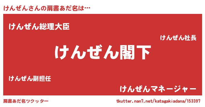 | 意味不明あだ名 | 『自称けんぜん』『けんぜんフォーエバー』 |