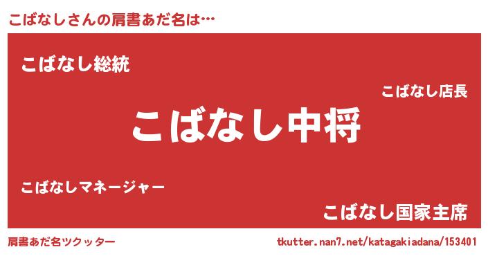| 男性向けラノベタイトル風あだ名 | 『こばなし~年齢イコール彼女いない歴の魔法使い~』 |