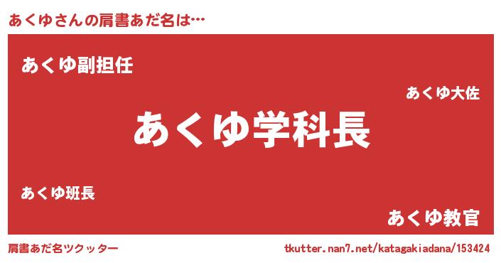| ヘコむあだ名 | 『あくゆ(苦笑)』『あくぷりん』 |
