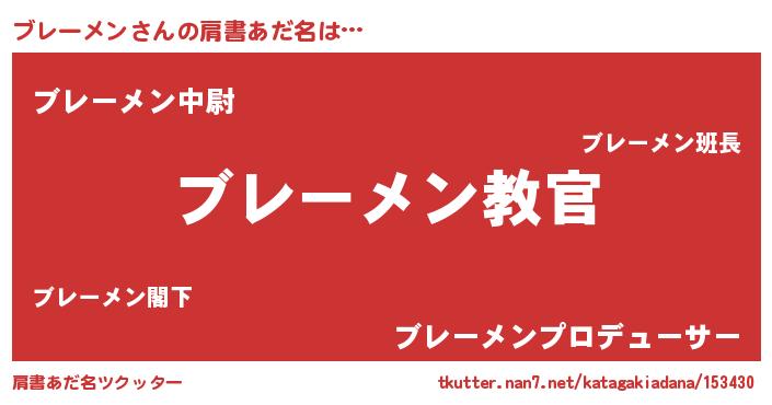| 意味不明あだ名 | 『住所不定無職ブレーメン(8歳)』 |