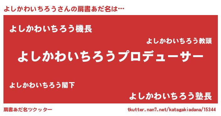 | 意味不明あだ名 | 『とにかく怪しいよしかわいちろう』 |