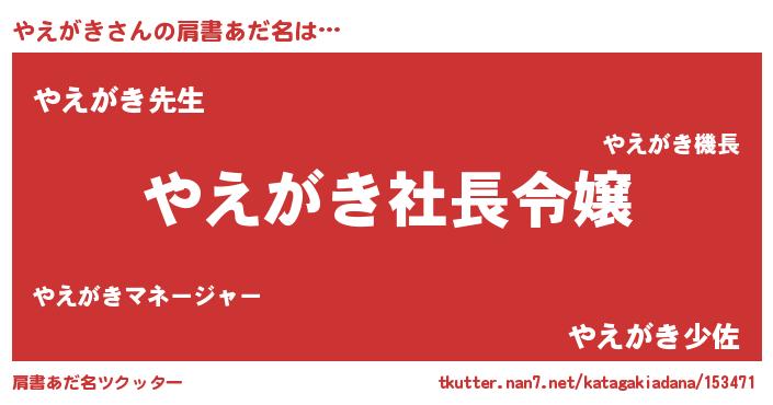 | ヒーロー風カッコイイあだ名 | 『スーパーヤエガキ』『ネオヤエガキ』 |