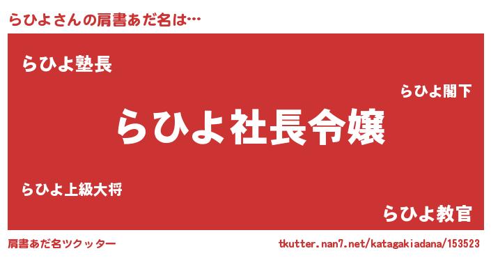 | 女子向けラノベタイトル風あだ名 | 『(仮)らひよのやんごとなき事情』 |