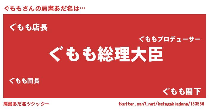 | ヘコむあだ名 | 『豆乳』『ぐもっふぃ~』『ぐもお』 |