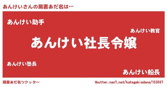 | 女子向けラノベタイトル風あだ名 | 『(仮)あんけいのやんごとなき事情』 |