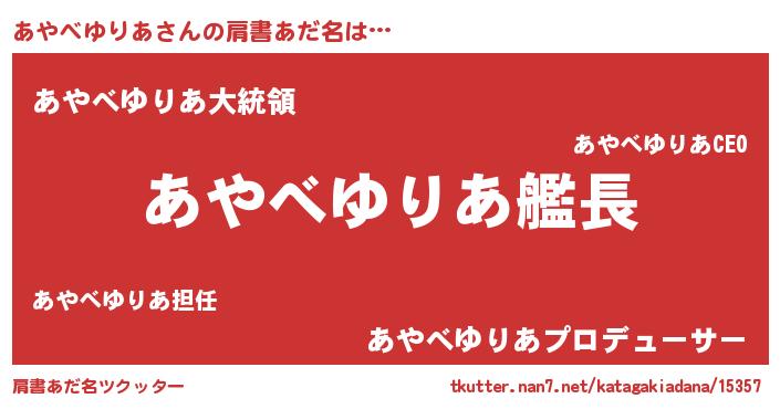 | 意味不明あだ名 | 『あやべゆりあフォーエバー』 |