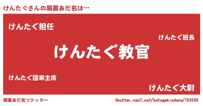 | ヒーロー風カッコイイあだ名 | 『仮面ケンダー』『ネオケンタグ』 |