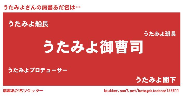 | 男性向けラノベタイトル風あだ名 | 『うたみよの憂鬱』『緋弾のウタミヨ』 |