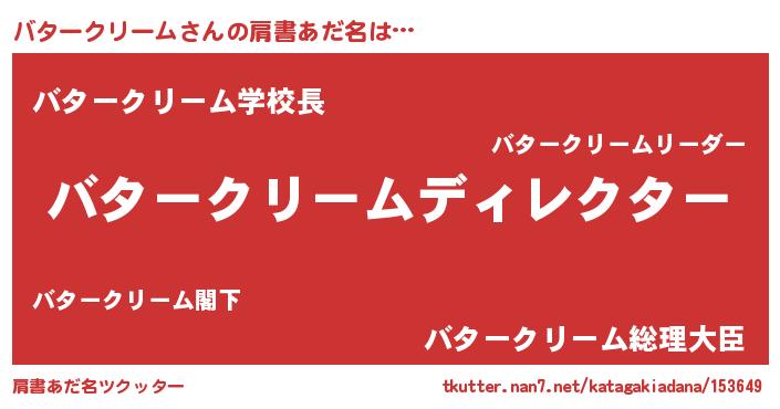 | 男性向けラノベタイトル風あだ名 | 『はたらくバタークリームさま!』 |