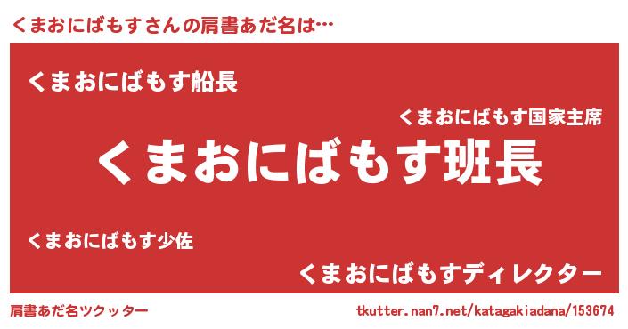 | 男性向けラノベタイトル風あだ名 | 『くまおにばもすの嫁は女の子じゃないと思った?』 |