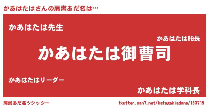 | 胡散臭い通販商品みたいなあだ名 | 『必ず成功する霊験あらたかなお札…その名も「かあはたは」』 |