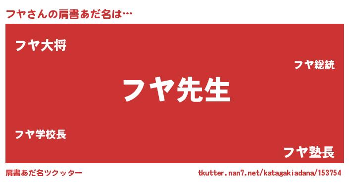 | ヘコむあだ名 | 『フヤ(小並感)』『フヤぷりん』 |