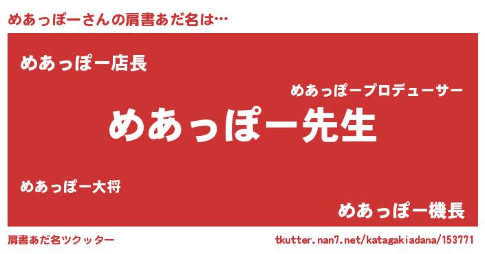 | 意味不明あだ名 | 『永久保存めあっぽー』『自称めあっぽー』 |
