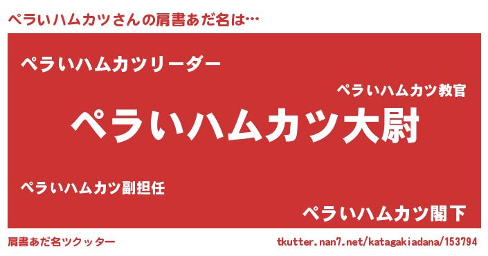 | ポケモン風あだ名 | 『ペラキング』『ヒペライハムカツ』 |