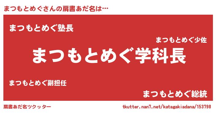 | ポケモン風あだ名 | 『マックウザ』『ヒマツモトメグ』 |