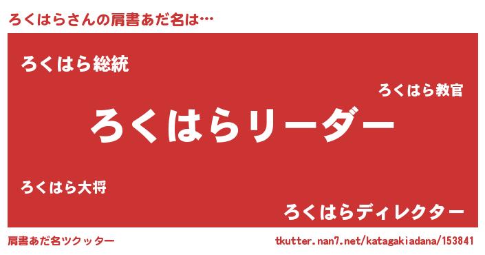 | 意味不明あだ名 | 『とにかく怪しいろくはら』 |