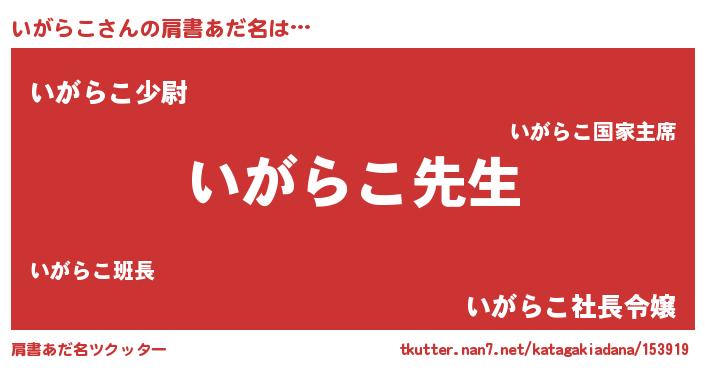 | ヒーロー風カッコイイあだ名 | 『ネオイガラコ』『スーパーイガラコ』 |