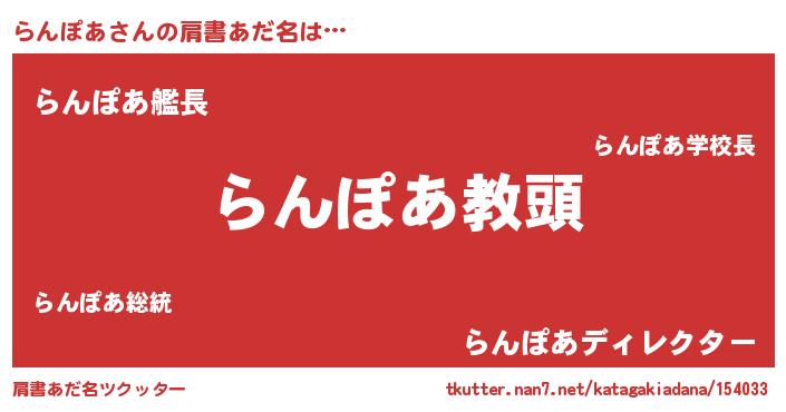 | ヒーロー風カッコイイあだ名 | 『ネオランポア』『愛の使者らんぽあ』 |