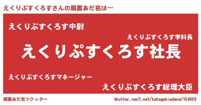 | 男性向けラノベタイトル風あだ名 | 『えくりぷすくろすの憂鬱』 |