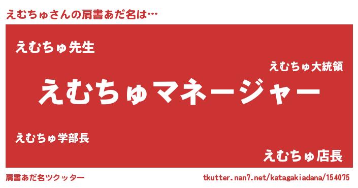 | ヘコむあだ名 | 『えむちゅ(小並感)』『えむにー』 |