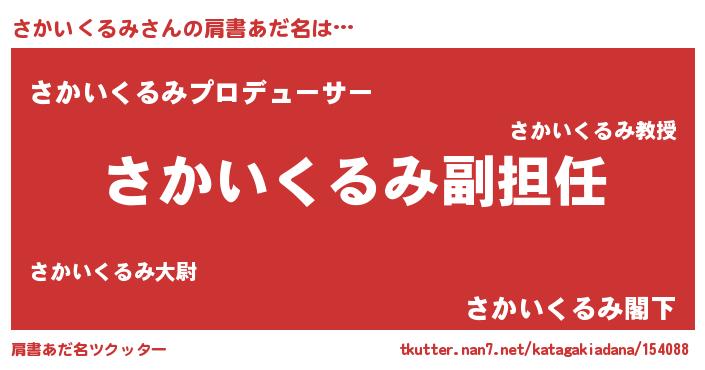 | 胡散臭い通販商品みたいなあだ名 | 『来世でも幸せになれる水素水…その名も「さかいくるみ」』 |