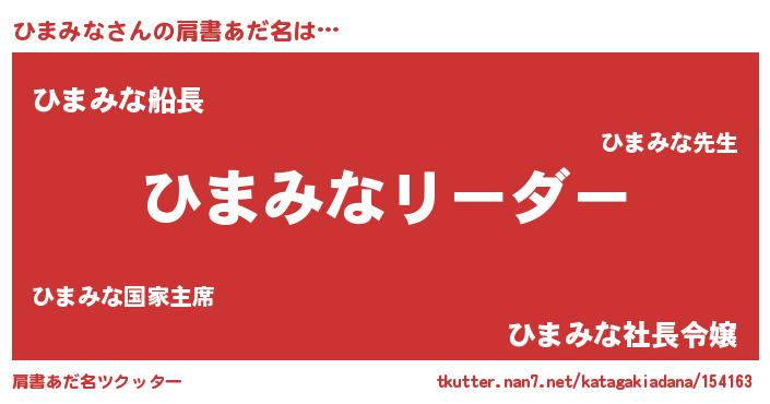 | 意味不明あだ名 | 『とにかく怪しいひまみな』 |