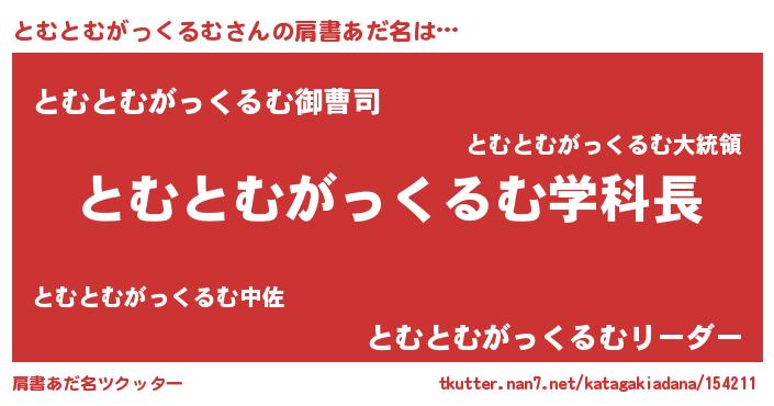 | 男性向けラノベタイトル風あだ名 | 『おまえをオタクにしてやるから、俺をとむとむがっくるむにしてくれ! 』 |