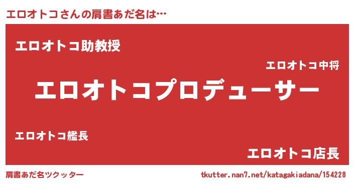 | 男性向けラノベタイトル風あだ名 | 『エロオトコに滅ぼされるだけの簡単なお仕事です』 |