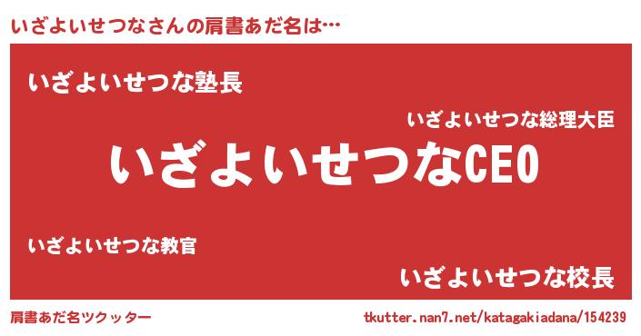 | ポケモン風あだ名 | 『イザチュウ』『ヒイザヨイセツナ』 |