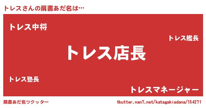 | 男性向けラノベタイトル風あだ名 | 『トレスの憂鬱』 |