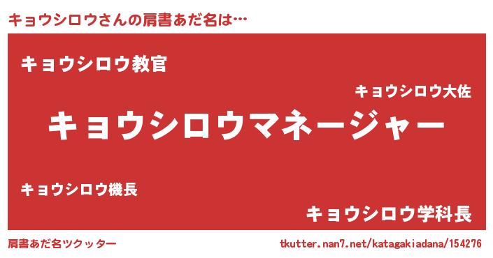 | ヒーロー風カッコイイあだ名 | 『仮面キョダー』『愛の使者キョウシロウ』 |