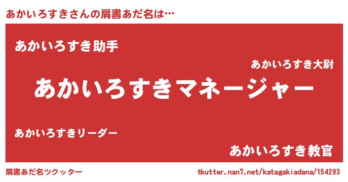 | ヘコむあだ名 | 『あかを』『あかいろすき(笑)』 |