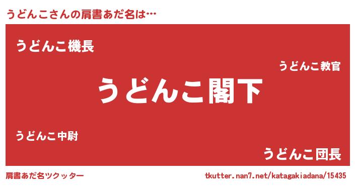 | 男性向けラノベタイトル風あだ名 | 『Re:うどんこから始める異世界生活』 |