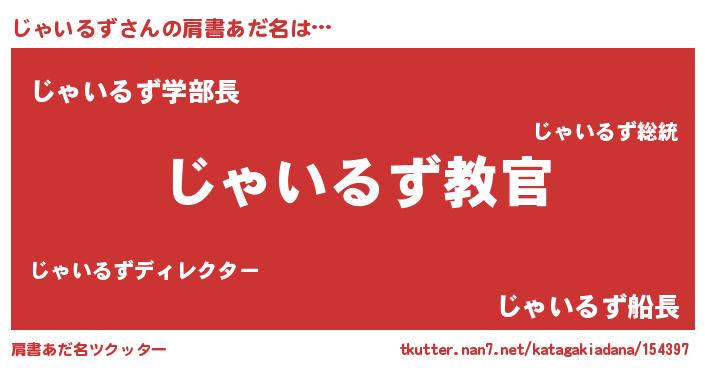 | 女子向けラノベタイトル風あだ名 | 『じゃいるずが死なない童話 林檎のじゃいるずの診療簿』 |