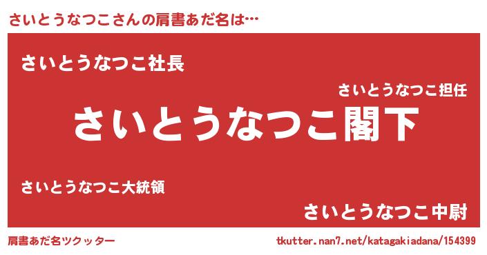 | 女子向けラノベタイトル風あだ名 | 『さいとうなつこストレイドッグス』 |