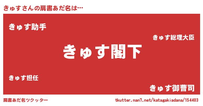 | 意味不明あだ名 | 『自称きゅす』『眠気覚ましガムきゅす味』 |