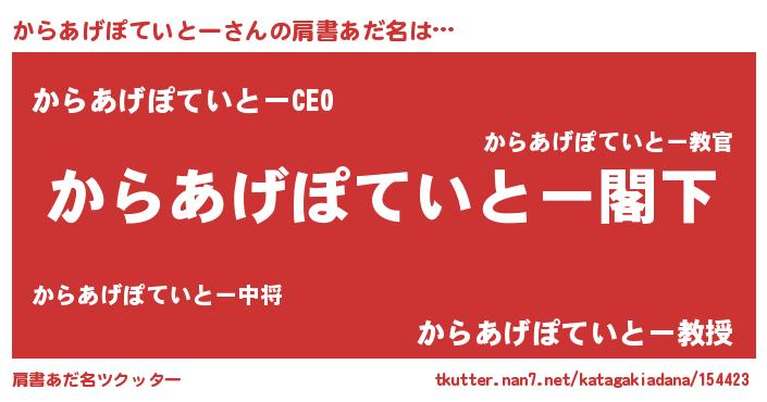 | 欧米人風あだ名 | 『ケンブリッジからあげぽていとー』 |