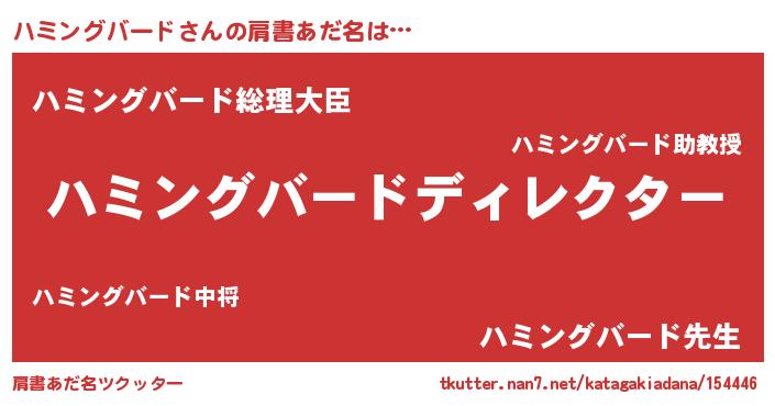 | ファンタジー風あだ名 | 『エターナルハミングバードー』 |