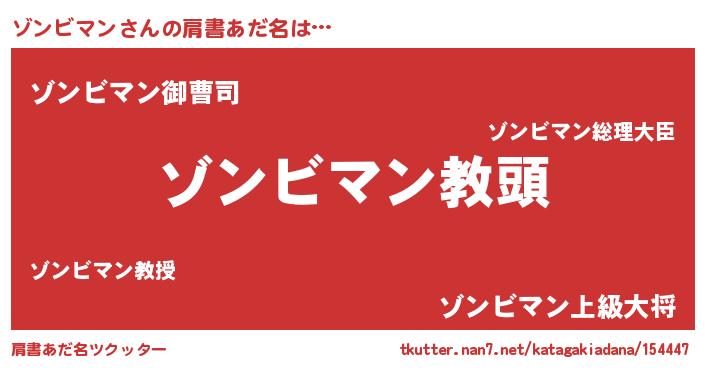 | 女子向けラノベタイトル風あだ名 | 『異世界で失敗しない100のゾンビマン』 |