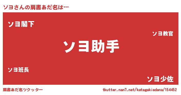 | ヘコむあだ名 | 『ソヨ太郎』『ソヨにー』『豆乳』 |