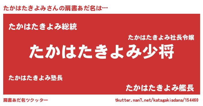 | 料理風あだ名 | 『たかはたきよみごはん』 |