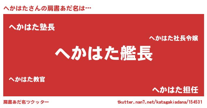 | 意味不明あだ名 | 『とにかく怪しいへかはた』 |
