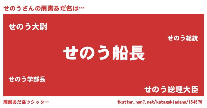 | ヒーロー風カッコイイあだ名 | 『ウルトラせのうマン』『仮面セノダー』 |