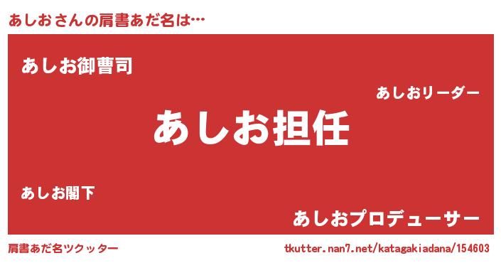 | 恥ずかしいあだ名 | 『あしちん』『プリティーあしお』 |